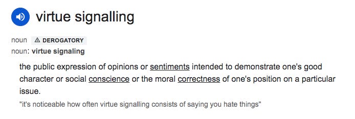 And so, I offer a potentially odd take: I don’t care if you are virtue signalling.