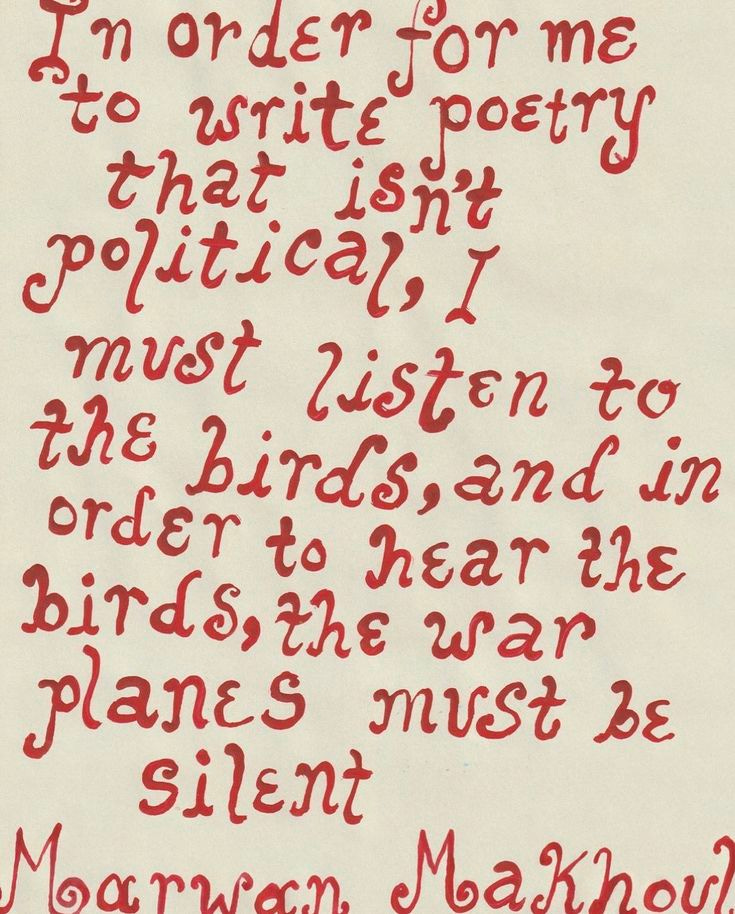 Recently I saw a popular influencer talk about how she wasn’t going to talk about the ongoing genocide in Gaza beacuse she didn’t want to engage in “performative activism.” It seemed so strange to me, the very notion that one could performatively speak out about Gaza at all. After all, we don’t gain anything from standing with Palestinians, not in the cynical sense. There are no job opportunities that will favour us because we chose this side, no visa office, no institution. So what ulterior motive could a person possibly have? All I guarantee by speaking about Gaza is that I will lose half of my potential following in any art space, and likely never enter the USA. Yet this influencer had gotten it into her head that performative activism was the ultimate sin, and she must avoid those allegations at all cost.